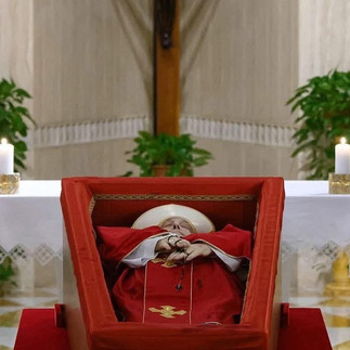 La tarde del lunes 21 de abril, el cardenal Kevin Joseph Farrell, camarlengo de la Iglesia Romana, presidió la constatación formal del deceso y la colocación del cuerpo en el ataúd. Según informó la Oficina de Prensa de la Santa Sede, el miércoles 23 de abril a las 9:00 horas el féretro será trasladado desde la capilla de la Domus Sanctæ Marthæ hasta la Basílica Papal de San Pedro, siguiendo el Ordo Exsequiarum Romani Pontificis.